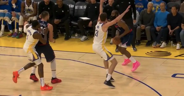 北京时间10月29日,NBA常规赛继续进行,金州勇士大战洛杉矶快船,两队全员出战。首节打了不到4分钟,库明加背身单打哈登,转身过后登哥使劲推了一把,库明加打成2+0。下一回合,哈登立即还以颜色,采用推土机的方式,强行碾压,顶着库明加上篮,完成2+1。