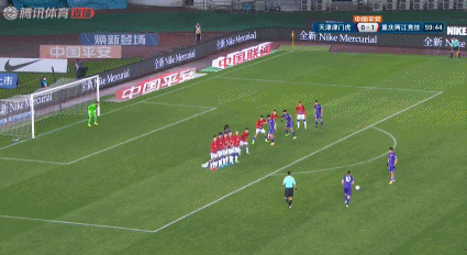 第60分钟,津门虎外援维基诺维奇任意球世界波破门,帮助球队1-1扳平比分。